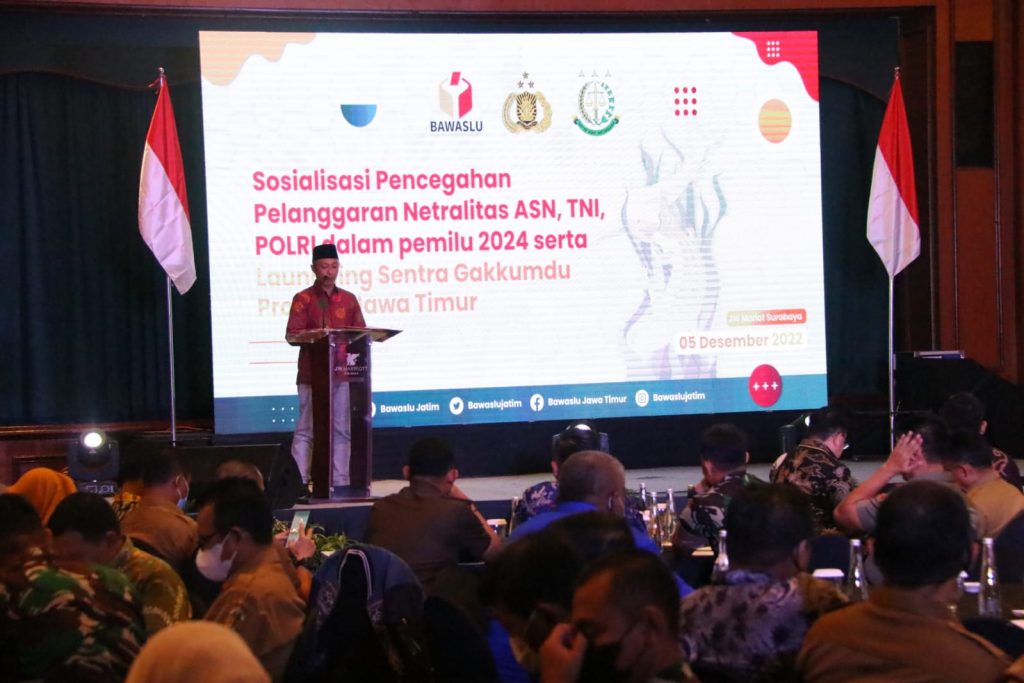 Sentra Penegakan Hukum Terpadu (Gakkumdu) Jatim untuk Pemilu 2024 resmi diluncurkan Senin (05/12/2022).